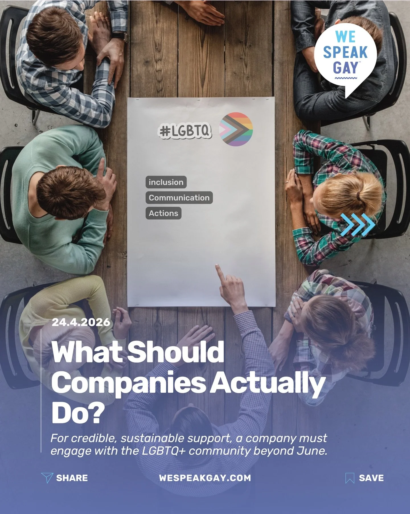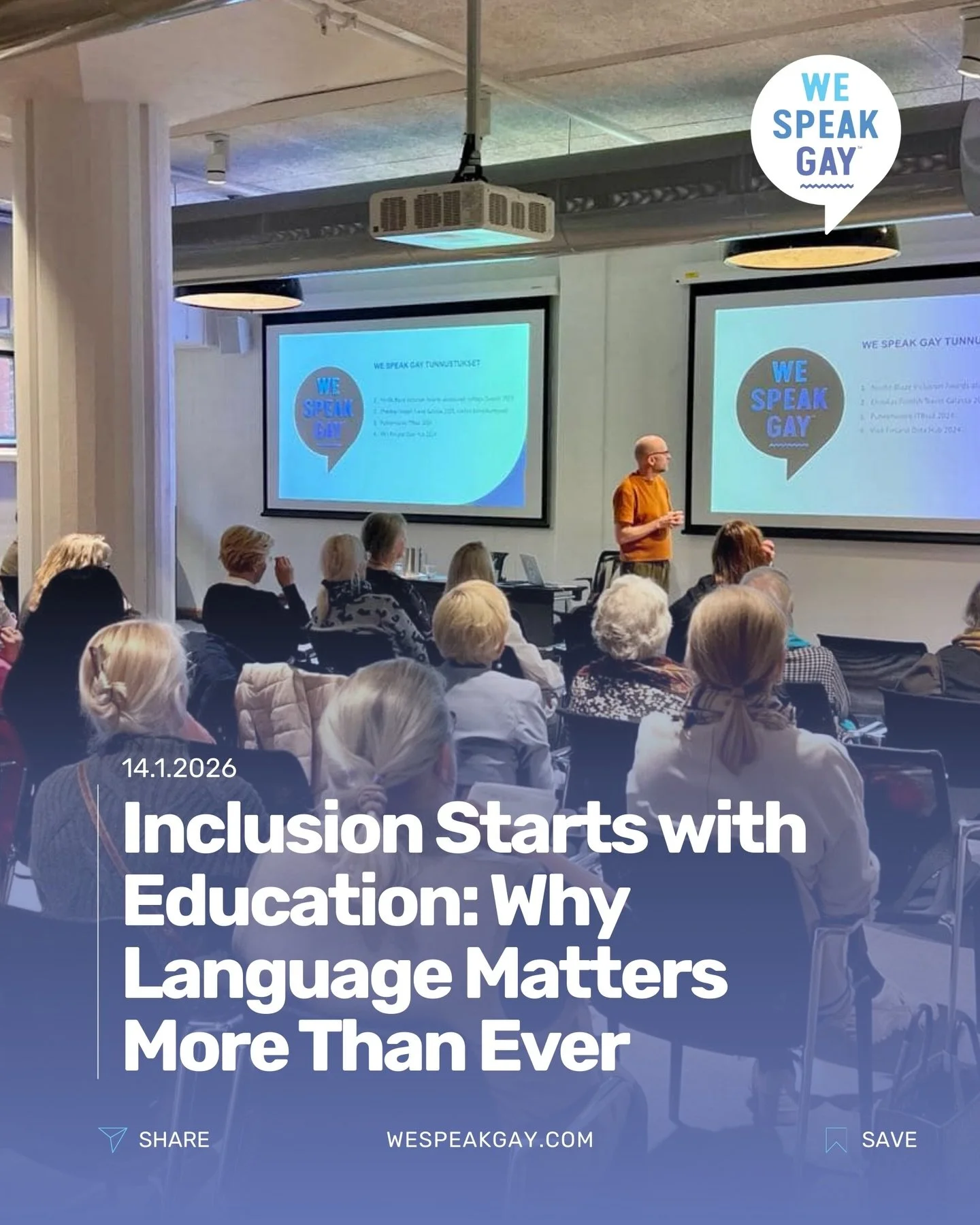 We Speak Gay yhteisössä sitoutudutaan sateenkaariviestintään ja edistämään sateenkaari-inklusiivisuutta.